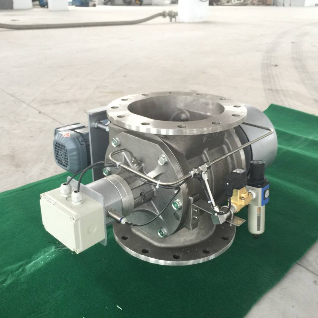 不銹鋼關風器是用于安裝在正壓或者負壓下工作的沙克龍下端,上部接受卸料器排出的物料,通過旋轉的葉輪轉子起著輸送物料的作用,又擔負著密封的作用,防止氣力輸送過程中從排料口進入空氣,保證卸料器的正常卸料。